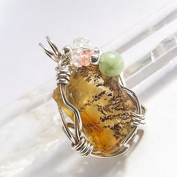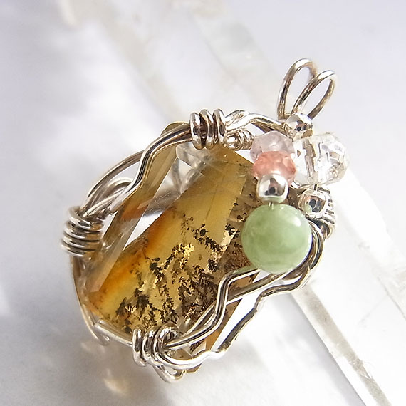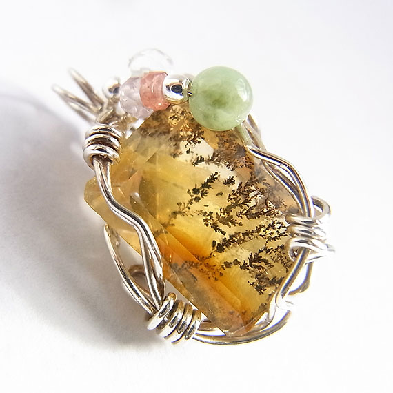 デンドリッククオーツのワイヤーペンダント 植物をそのまま閉じ込めてしまったかのような模様の面白いデンドリッククォーツを *デンドリッククォーツ* |