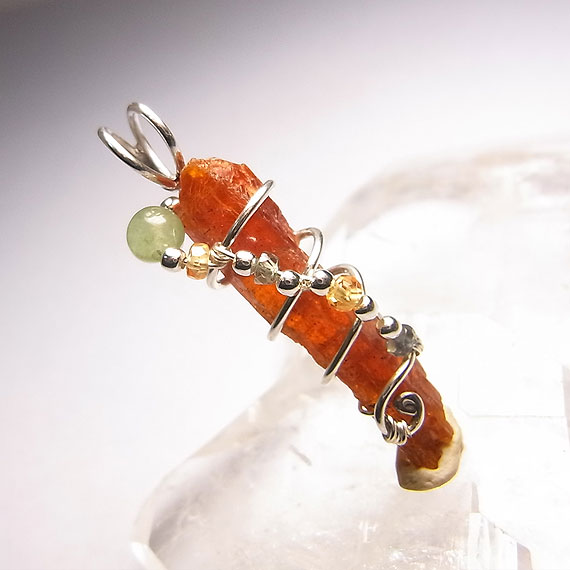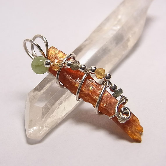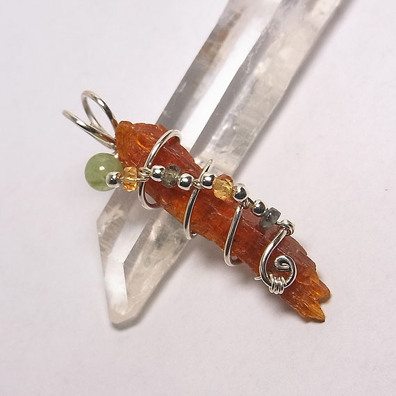 オレンジカイヤナイトの原石ペンダント タンザニアで産出するオレンジ色の発色が美しいカイヤナイトの原石を *オレンジカイヤナイト* 2009年頃から登場したカイヤナイトの亜種でマンガンが起因して、このようなオレンジ色になっています。 光が透過すると鮮やかなオレンジ色に見えますよ。