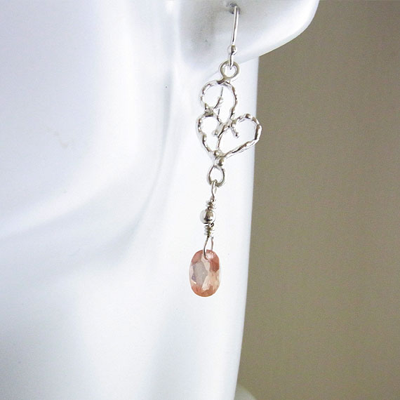 アンデシンの唐草ピアス 赤みのある地色に淡いグリーンの光が差し込む不思議な色合いのアンデシンを こちらは左右の色が少し違うのと、片方のルースのエッジ部分に小さな欠けがあるため | |