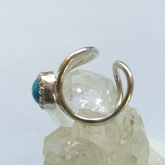*スリーピングビューティー・ターコイズ* こちらのイヤーカフは、画像4枚目のように耳の軟骨に引っかけて留めます。 少し大きい場合は、カフスの裏側の部分を少し力を入れて挟み込むように固定してください。 *強い力を加えると破損する恐れがありますので、優しくお取扱いください。 | |