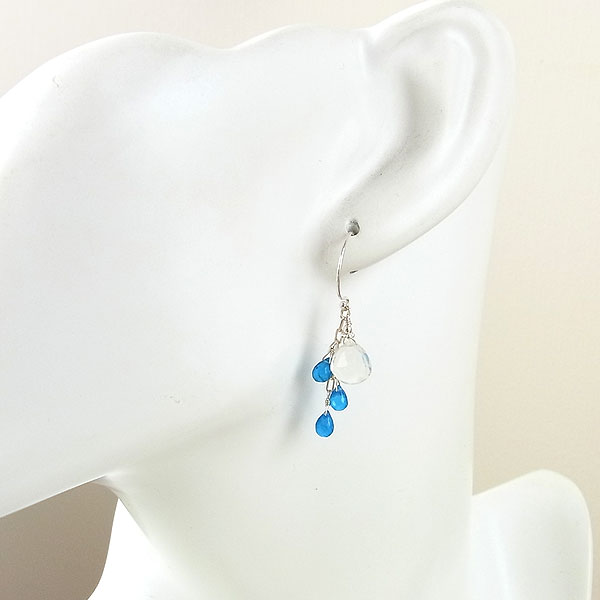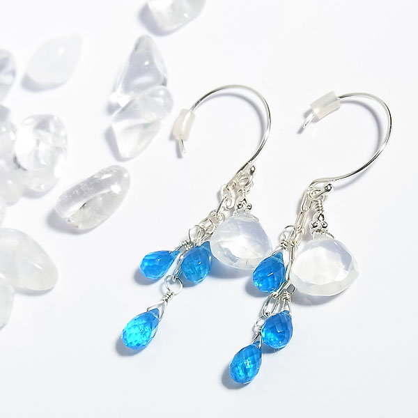 ネオンブルーアパタイトとムーンクォーツのピアス