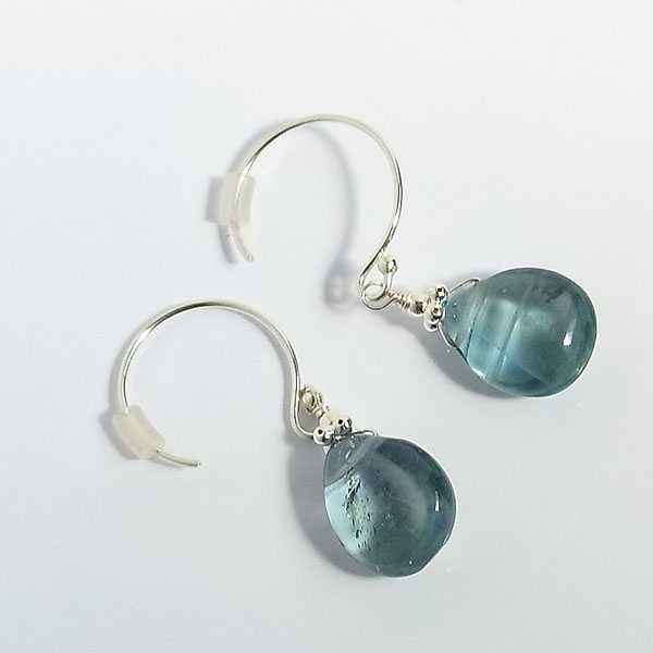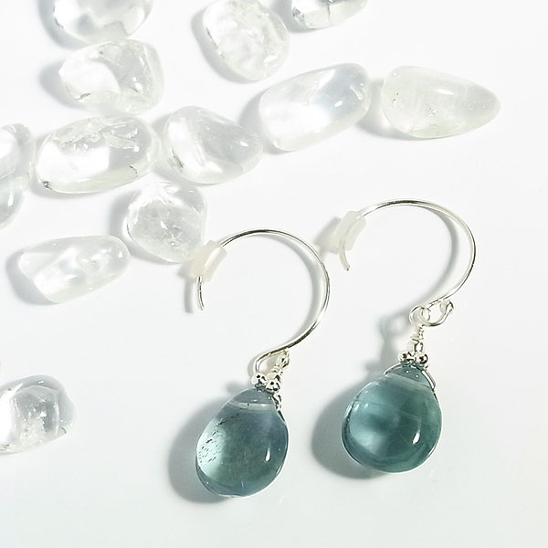 つるんとしたスムースドロップのフローライトビーズをシンプルに留めたシルバーピアスです。 透明感があるブルーグリーンの綺麗なフローライトです。 若干内部にクラックが見られますので、ご了承ください。