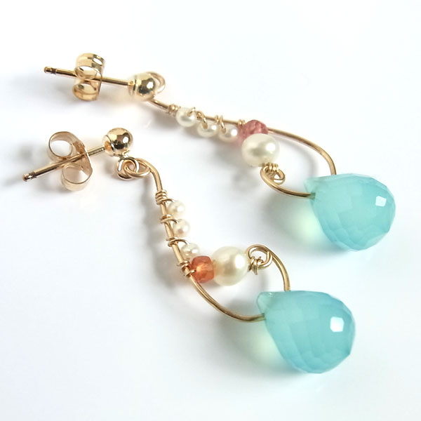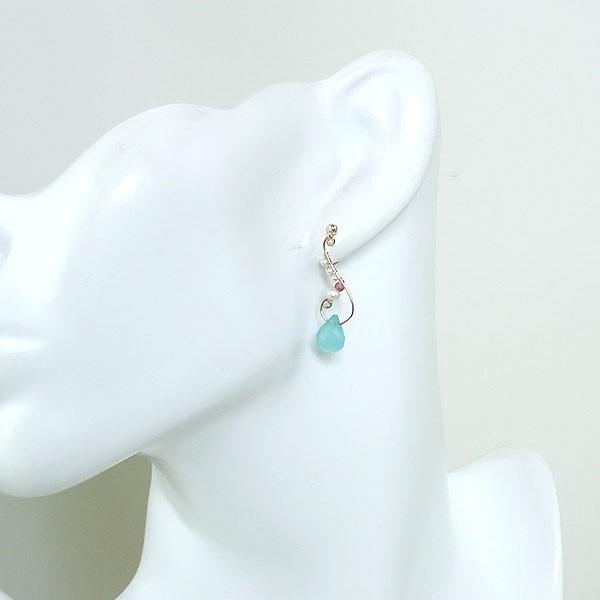 シーブルーカルセドニーのスイングピアス 14KGF