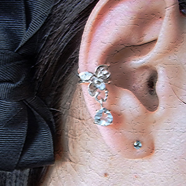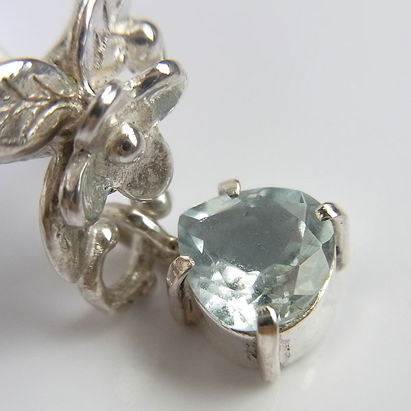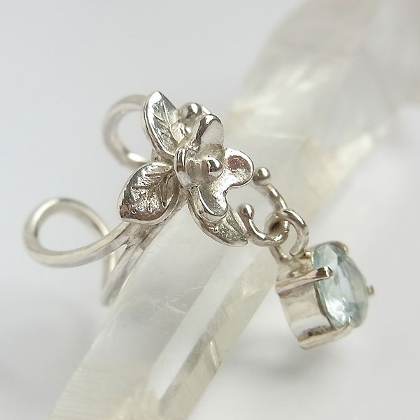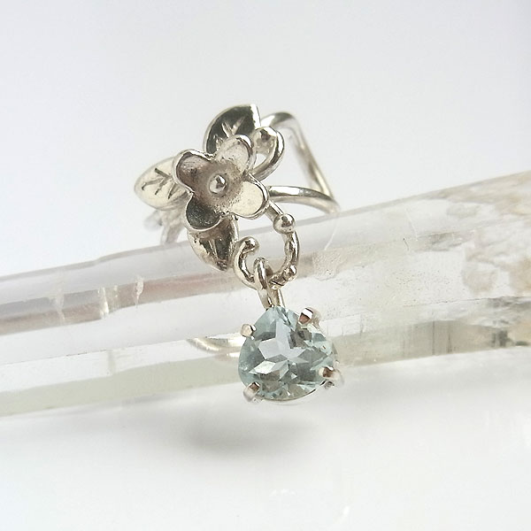 イヤーカフに小さなお花をちょこんとあしらい、淡い水色のアクアマリンを飾り付けてみました。 動きに合わせて揺れますので、キラキラして綺麗ですよ。