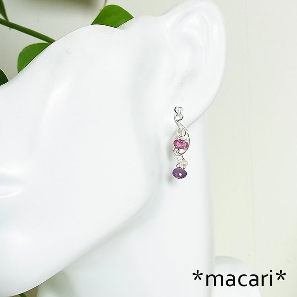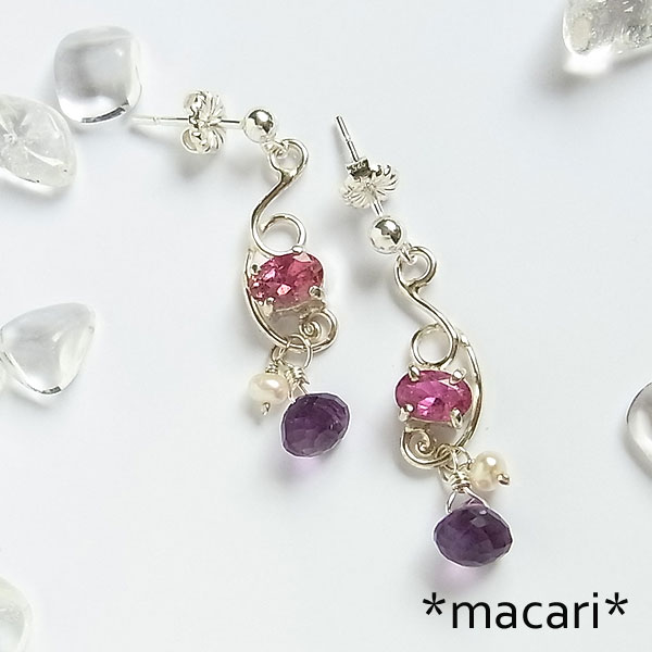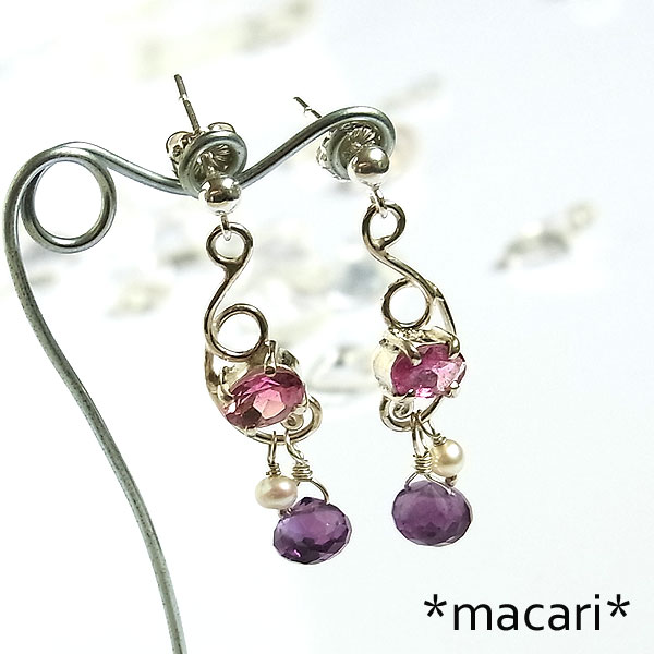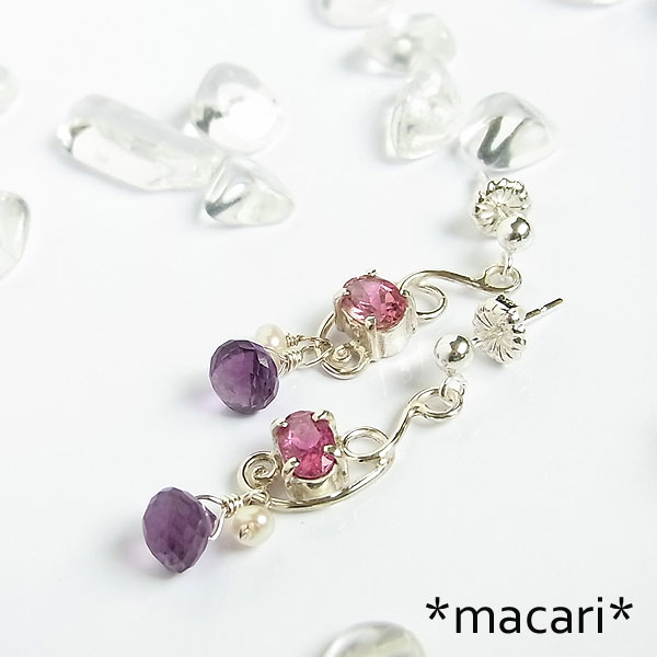 ピンクトルマリンとアメシストのピアス