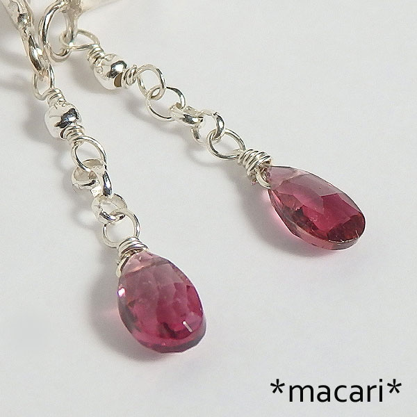 ピンクトルマリンを何個かつけようかと思いましたが、綺麗に垂れ下がらないため シンプルに一個だけ繋いでみました。