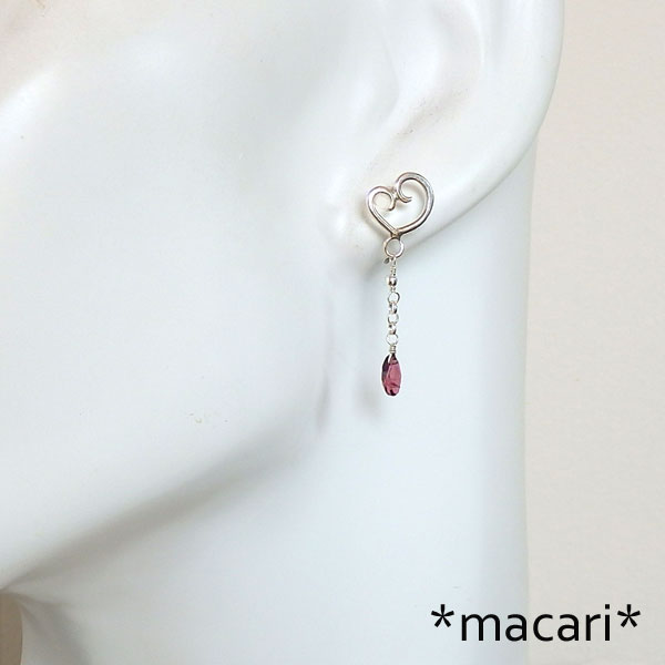 銀線で作り上げたハートに、小粒ですが輝きの美しいピンクトルマリンを飾り付けた 可憐な印象のピアスです。