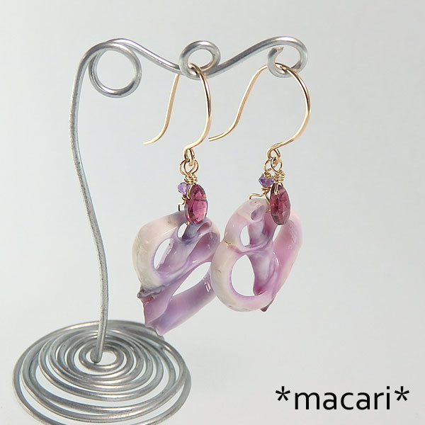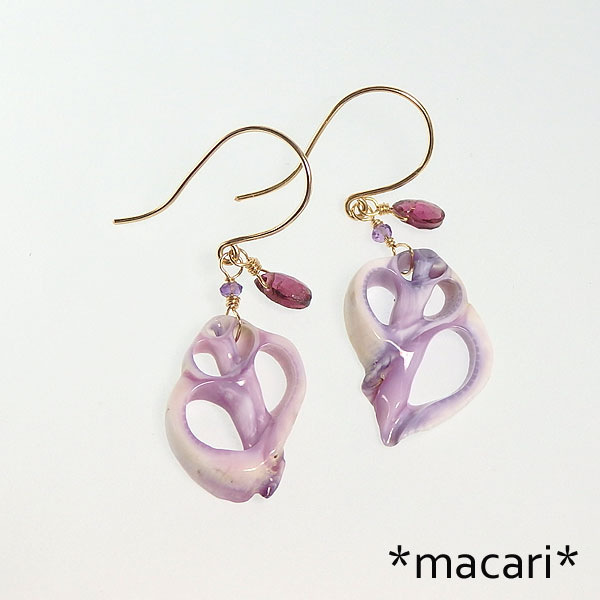 パープルシェルとトルマリンのピアス k14GF