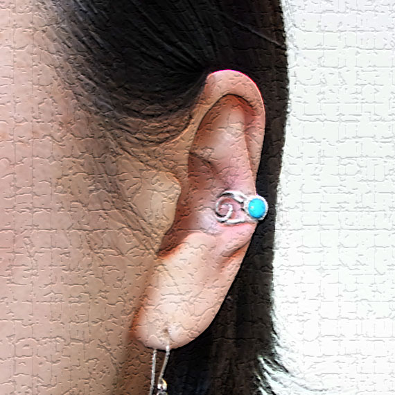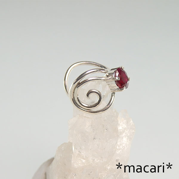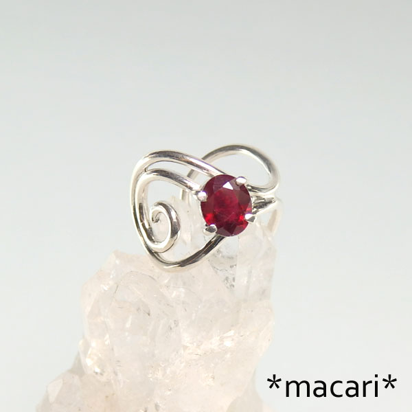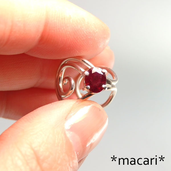 こちらのイヤーカフは、画像5枚目のように耳の軟骨に引っかけて留めます。 イヤーカフは丸線で制作していますので、耳あたりが良く *ルビーの表面に小さな浅い傷が見られますので、予めご了承ください。 |