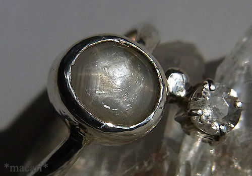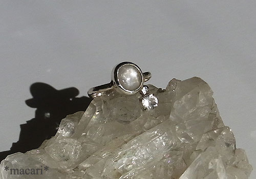 シルバーグレーのスターサファイアとポルサイトを組み合わせた可愛らしいリングです。