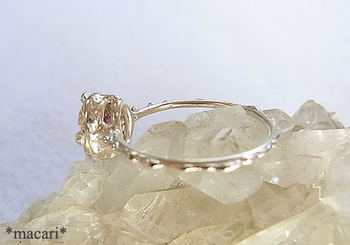 小粒の綺麗なピンクトルマリンを華奢な粒々デザインのリングに仕上げました。細かなカットが施されているので、輝きがとても綺麗です。