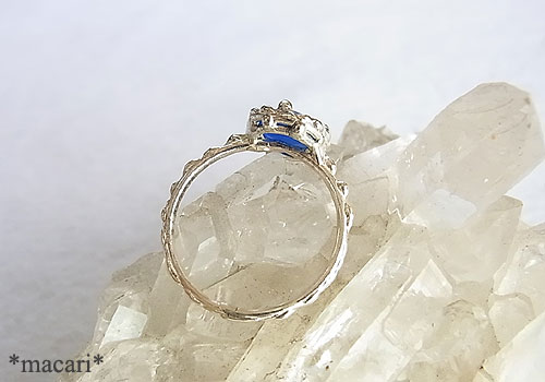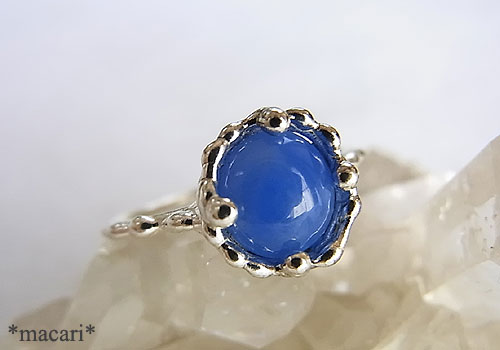 アフガナイトにラズライト(青金石)が染み込み、鮮やかなブルーに色付いた美しい小粒の石をリングに仕上げました。