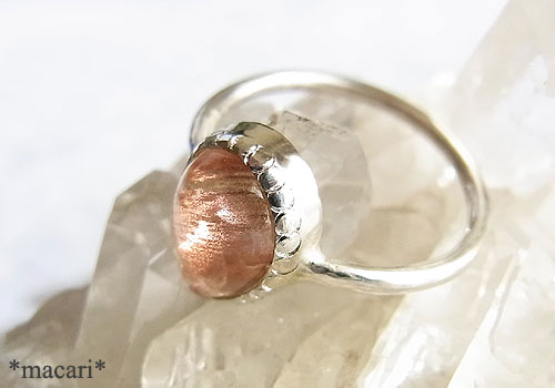 内包された微細な銅の結晶片が光に当たると品良く、キラキラと輝くオレゴンサンストーンをシンプルなリングに仕上げました。