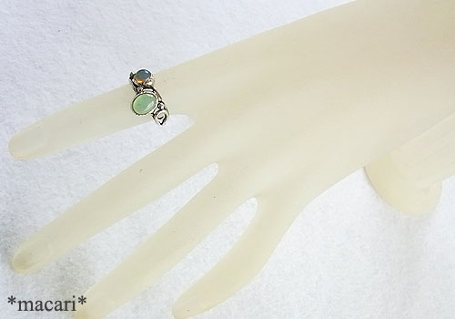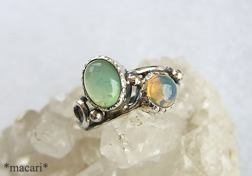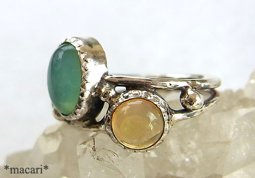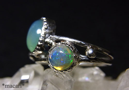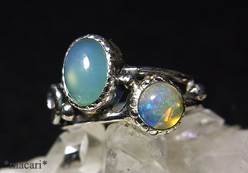小粒のエチオピアオパールとブルーオパールを組み合わせた個性的なリングです。
