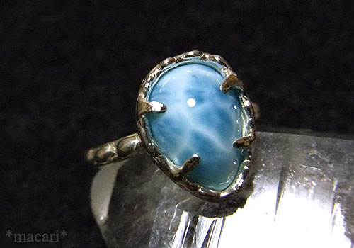 AAA+グレードの高品質ラリマーを有機的なテクスチャのリングに仕上げました。ラリマー独特の模様も綺麗に入った美しいラリマーです。