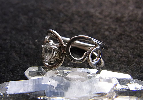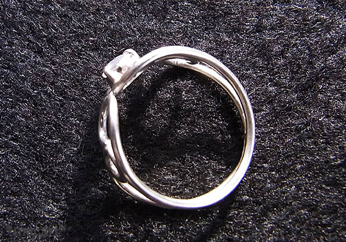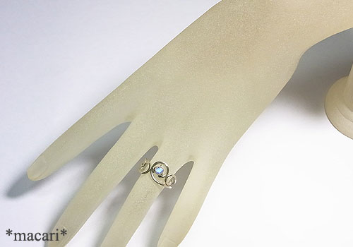 小粒ですが、一個使いでラインの綺麗な唐草デザインのリングに仕上げました。輝きが強いので、小さくても存在感がありますよ。