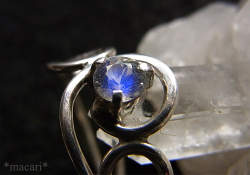 アノーサイト(灰長石)とアルバイト(曹長石)の中間に位置する斜長石グループの鉱物で、 「レインボーアンデシン」という名前で流通していたりする石ですが、こちらはブルーの輝きしか見られません。よくあるロイヤルブルームーンストーン(ラブラドライト)よりも青味が鮮やかで、石自体にも透明感が見られます。