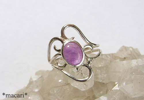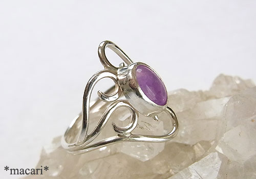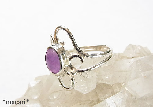 ソーダライトの変種で、日光に当てると濃い紫色に変化するハックマナイトという石をラインが綺麗なシルバーリングに仕上げました。
