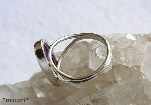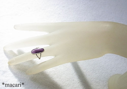 紫色がシックな印象のスギライトをシンプルで華奢なリングに仕上げました。こちらのスギライトは白熱灯に当たると赤紫色に変化します。