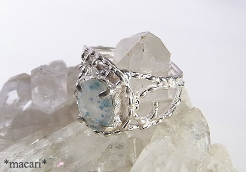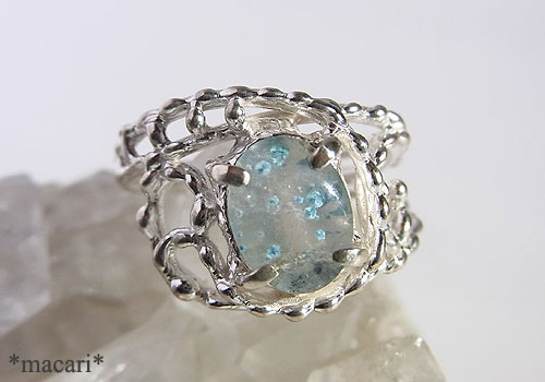 ブラジルのパライバ州で産出することから「パライバクォーツ」とも呼ばれています。爽やかなブルーと銀の輝きがマッチした品のあるリングです。*クラックが見られますので、予めご了承ください。
