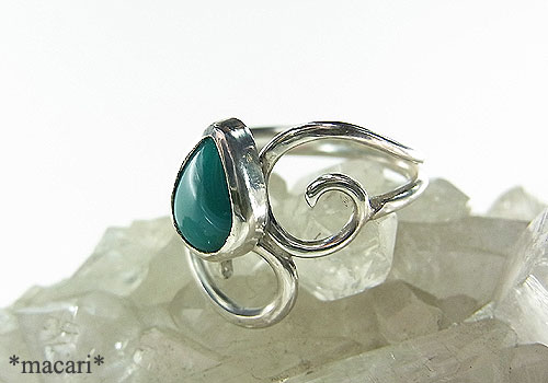 小粒のジェムシリカを唐草デザインの個性的なリングに仕上げました。