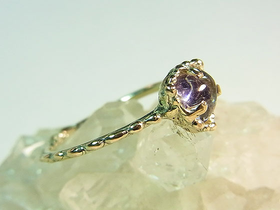 パープルフローライトinクォーツのイエローゴールドリング