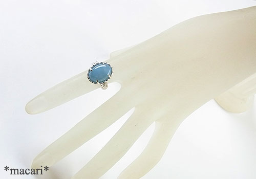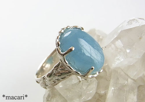 発色の美しいアクアマリンを有機的なテクスチャのリングに仕上げました。宝飾グレードではないので、透明感は見られませんが大粒で綺麗な青いアクアマリンです。:クラックや小さな溝が見られますので、予めご了承ください。