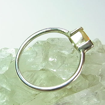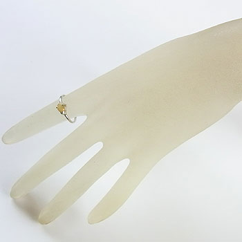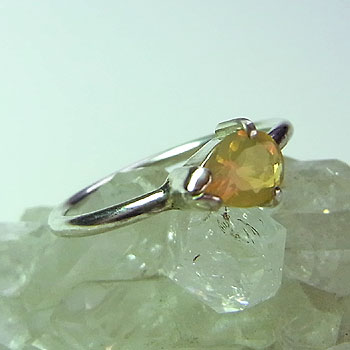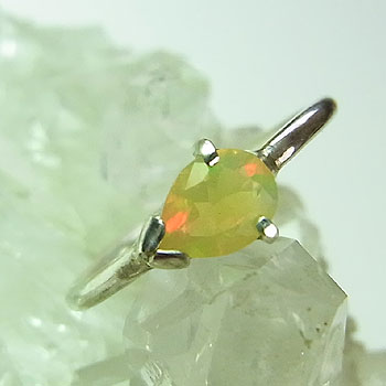 淡い黄色の地色に、グレーンやオレンジ色の遊色が煌く、小粒のエチオピアオパールをシンプルなアームのリングに仕上げました。