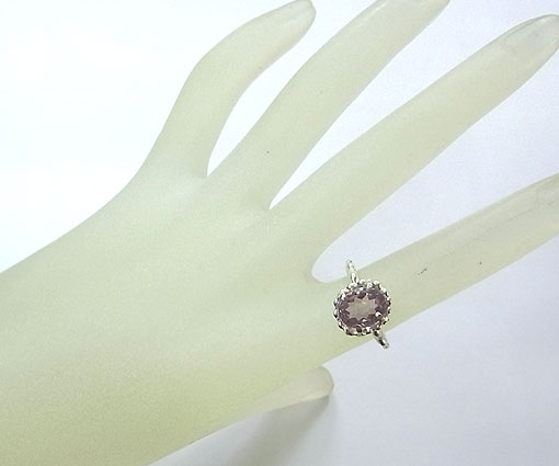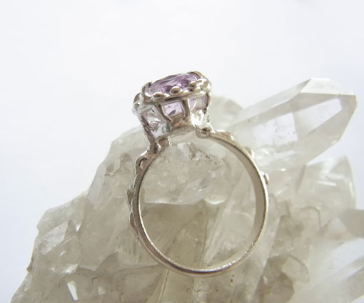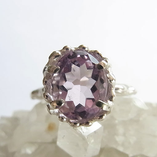 淡いピンクパープルのアメシストを粒飾りの可愛らしいリングに仕上げました。拡大して撮影しているので、僅かに内包物が写っていますが肉眼では分からない程度で大変クリーンなアメシストです。