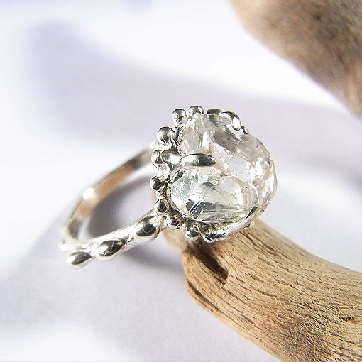 ハーキマーダイヤモンド(水晶)の粒飾りリング(小)
