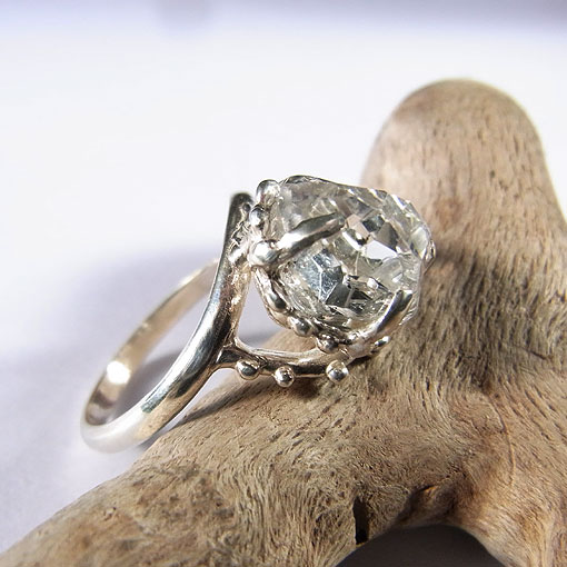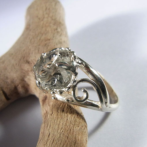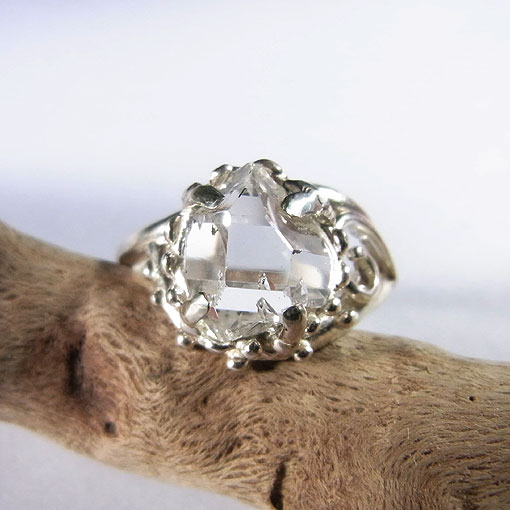 ハーキマーダイヤモンド(水晶)の片唐草リング