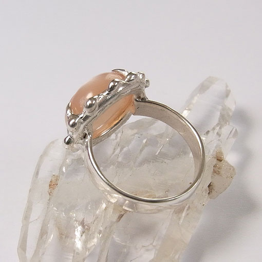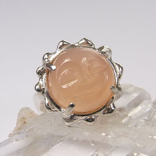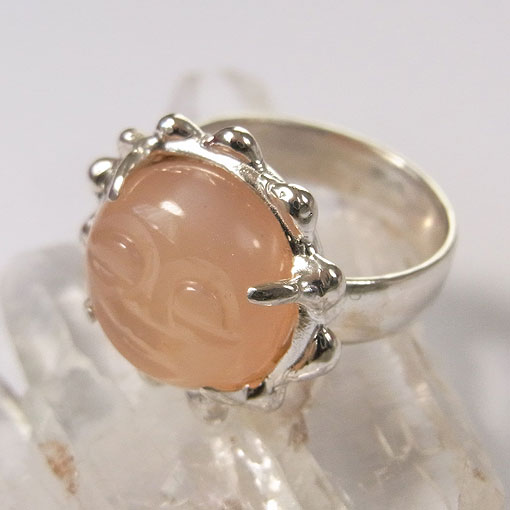 陽気な笑顔が元気をくれる癒し系リングです。 *ムーンストーン* オーソクレース フェルドスパー(長石)の一種で角度によって月光のような神秘的な 輝きが浮かぶことから 「ムーンストーン」と呼ばれています。 オレンジ色のほかにも、ホワイト、グレー、ブラック、グリーンなど様々な色合いのものが見られます。