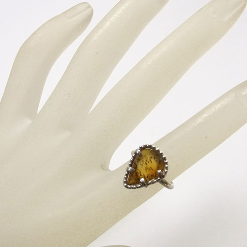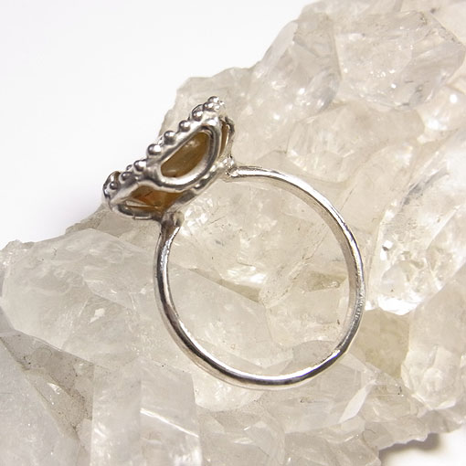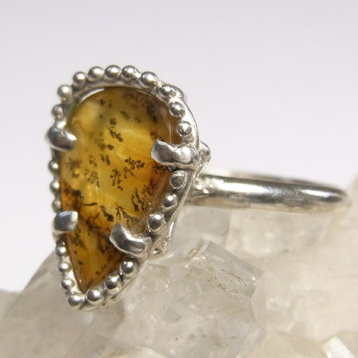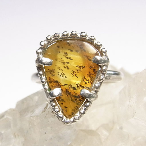 模様の綺麗なデンドリッククォーツを粒飾りの石枠に留めたシンプルなリングです。