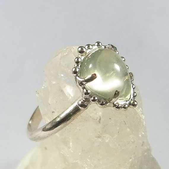 ![]() グリーンムーンストーンの粒飾りリング 淡いグリーンのムーンストーンを粒飾りのリングに仕上げました。