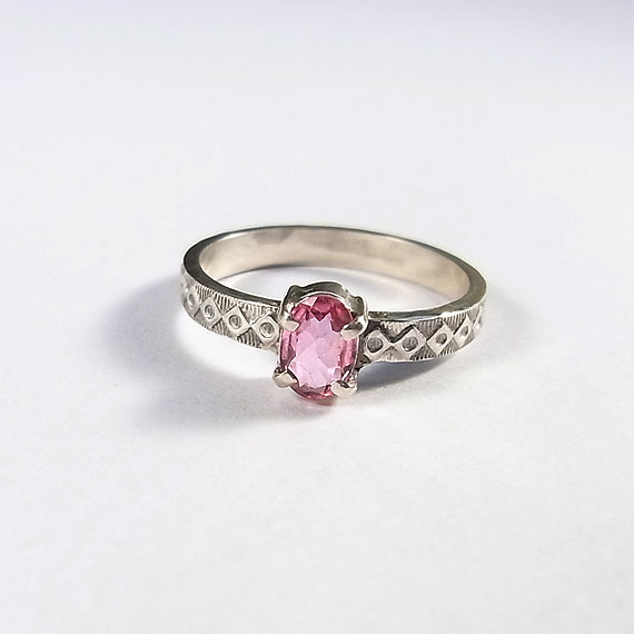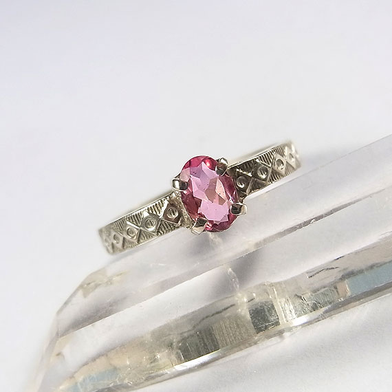 ![]() ピンクトルマリンのリング 鮮やかなピンク色のトルマリンをカチッとしたデザインのシンプルなリングに仕上げました。 小粒で発色の良いピンクトルマリンです。