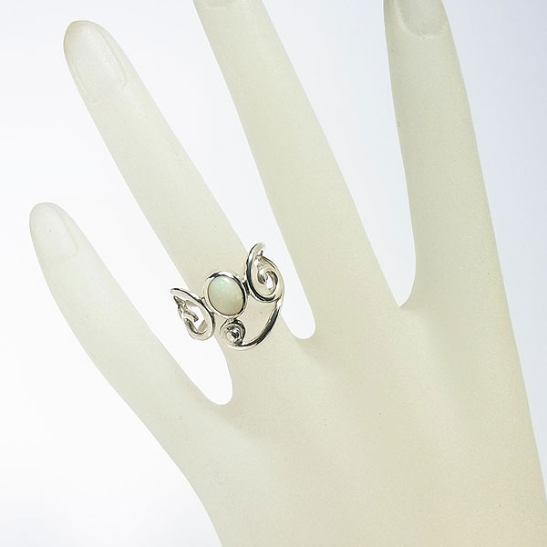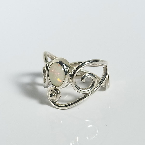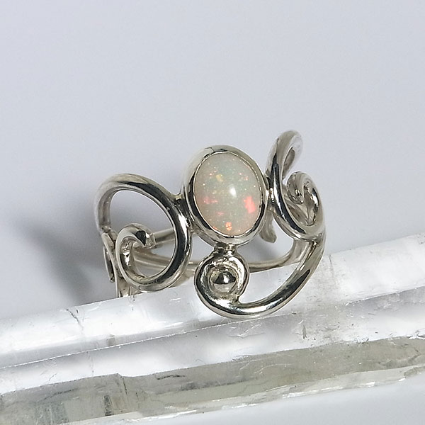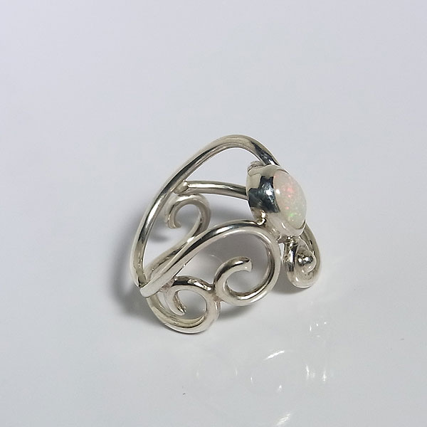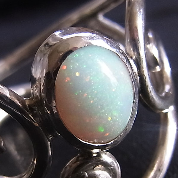 ![]() エチオピアオパールの唐草リング(ハイドロフェン) ピンファイアーと呼ばれる針の先で突いたような小さな遊色がキラキラと輝く