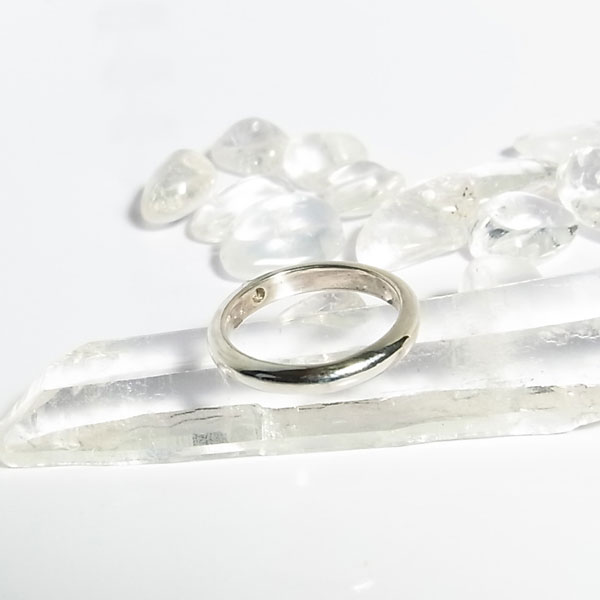 小さな小さなダイヤモンドを彫留でピンキーリング(小指用)に飾り付けました。 1.8ミリと小粒ですが、日の光に当てるとファイア(虹彩)も出ますよ。