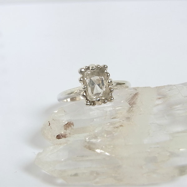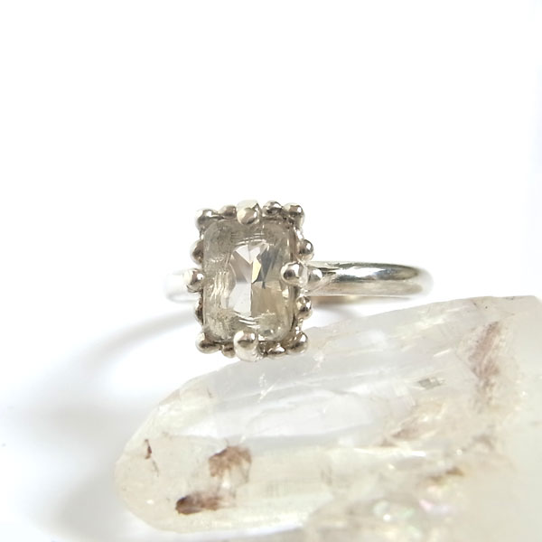 透明感があり、ほんのりミルキーな色合いのジラソルクォーツをシンプルなリングに仕上げました。