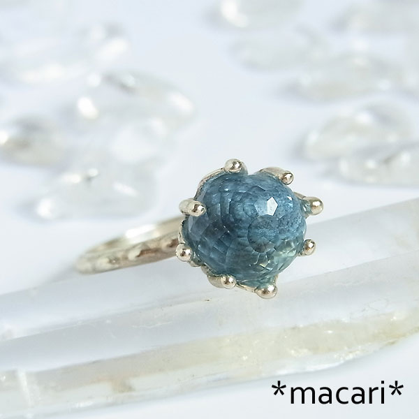 ![]() ブルートパーズのリング プックリした穴なしのブリオレットカットのブルートパーズを蕾のようなデザインのリングに仕上げました。 高さがりますので、衝撃を与えないようにご注意ください。