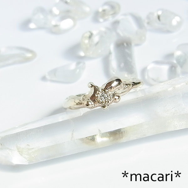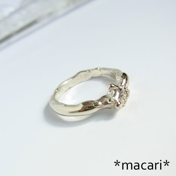 有機的なテクスチャのリングにダイヤモンドを埋め、周りをタガネで細かく彫り込んだ、 ちょっと変わったリングです。 小さなダイヤですが、光に当たると眩く輝いて綺麗ですよ。^^