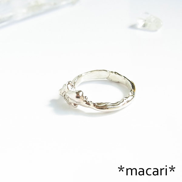 こちらはワックスを溶かして盛り付けて作ったリングの為、同じものは作ることができず 少し小さめの7.5号なので、サイズが合えばピンキーリング(小指用)としてもお使いいただけるかと思います。