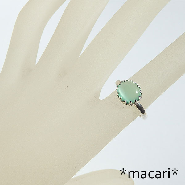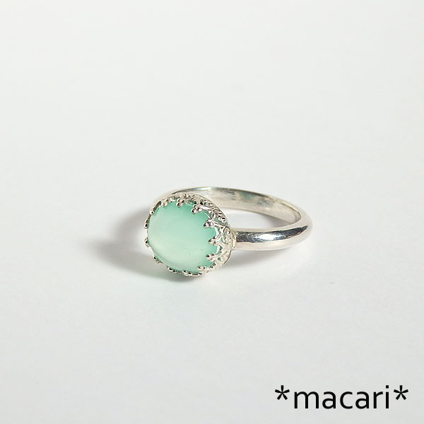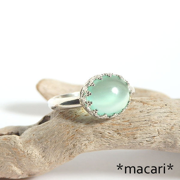 アップルグリーンカルサイトの飾り枠リング 透明感のある爽やかなアップルグリーンが魅力的なカルサイトを 角度によってキャッツアイや縞模様が現れますよ。 パキスタンやマダガスカルなどで産出するグリーンのカルサイト。 硬度が低い石なので、リングにするのもどうかと思ったのですが・・・ くれぐれも強い衝撃など与えないように優しくお取扱いくださいませ。 |