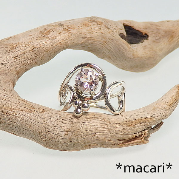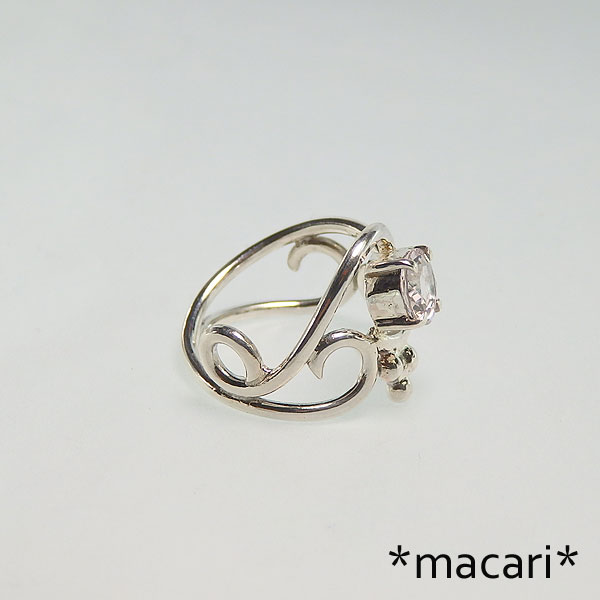 モルガナイトの唐草リング 淡いピンクの可愛らしいモルガナイトを左右非対称の変わった唐草デザインのリングに仕上げました。 小粒ですが、とても輝きの美しいモルガナイトです。 ちょっと変わったデザインですが、見る角度によって雰囲気が違って見えるので 丸線で作っているので指あたりも良いですよ。 *モルガナイト* 名前は発見者であるJPモルガン氏に因んで名づけられました。 |